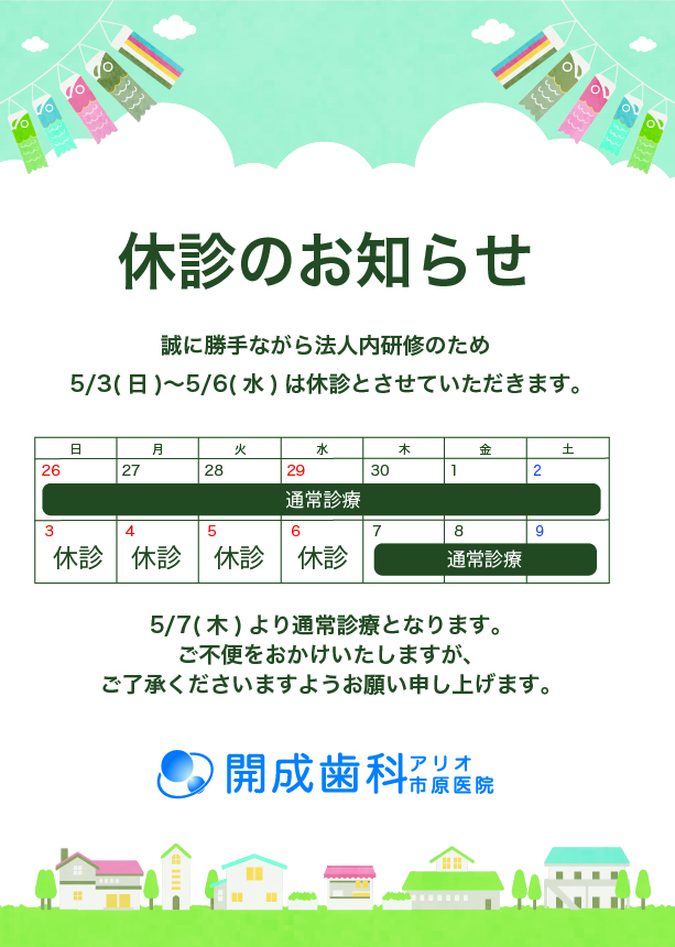 開成歯科アリオ市原医院からのお知らせ